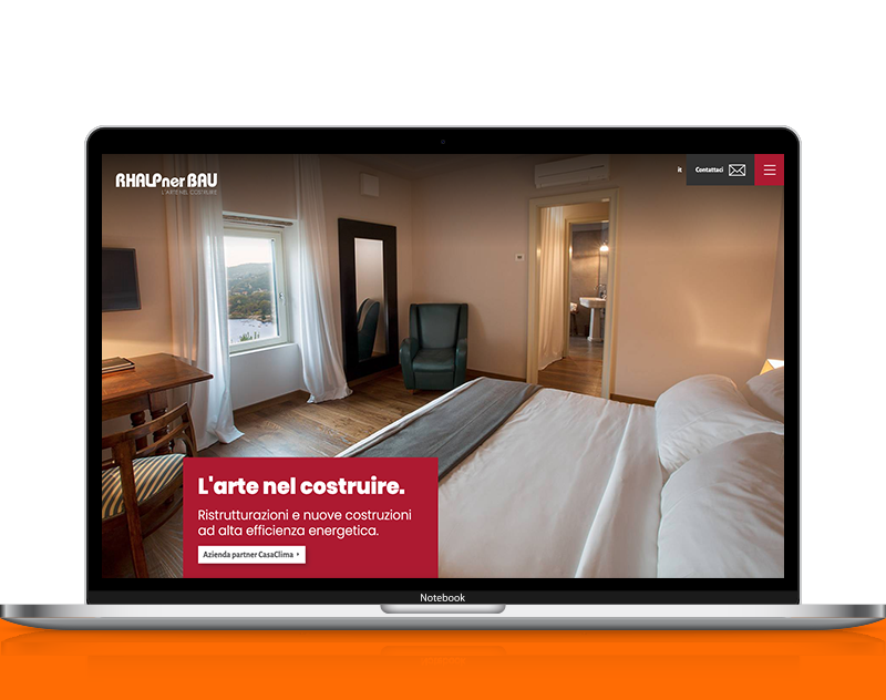 Rhalpnerbau è un'azienda operante nel settore della carpenteria, specializzata nella costruzione, nella ristrutturazione e in opere di risanamento ad alta efficienza energetica, dalle coperture in legno agli interventi conservativi su immobili di pregio e monumenti. L'obiettivo del sito, attraverso i colori e l'impatto grafico, è quello di dare massima visibilità ai loro servizi e alla loro mission in termini di sostenibilità.